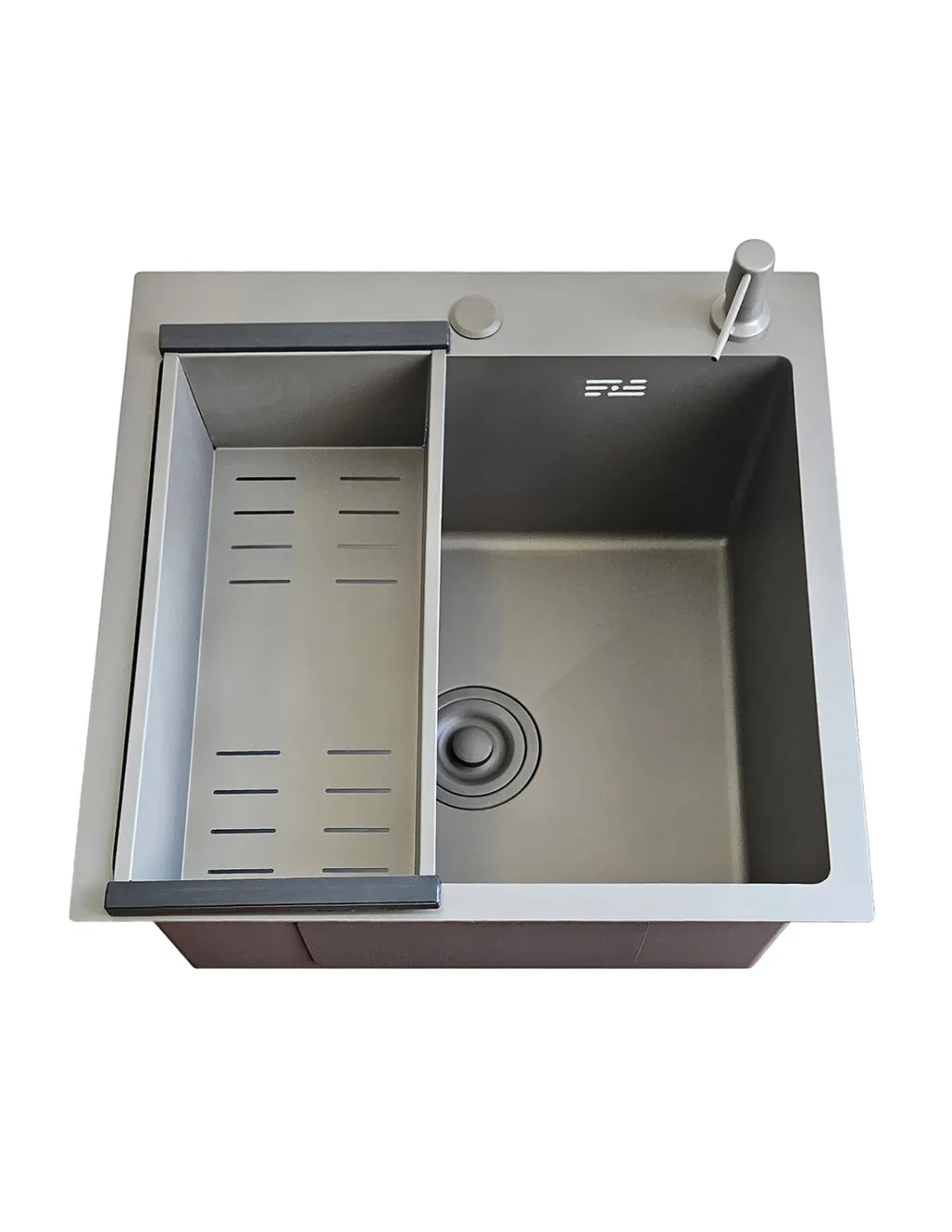 Фото Мийка одинар. Ital ID 6050 - G 600*500*215мм,(3.0/0.8мм),сифон, дозатор, кошик, PVD Grey