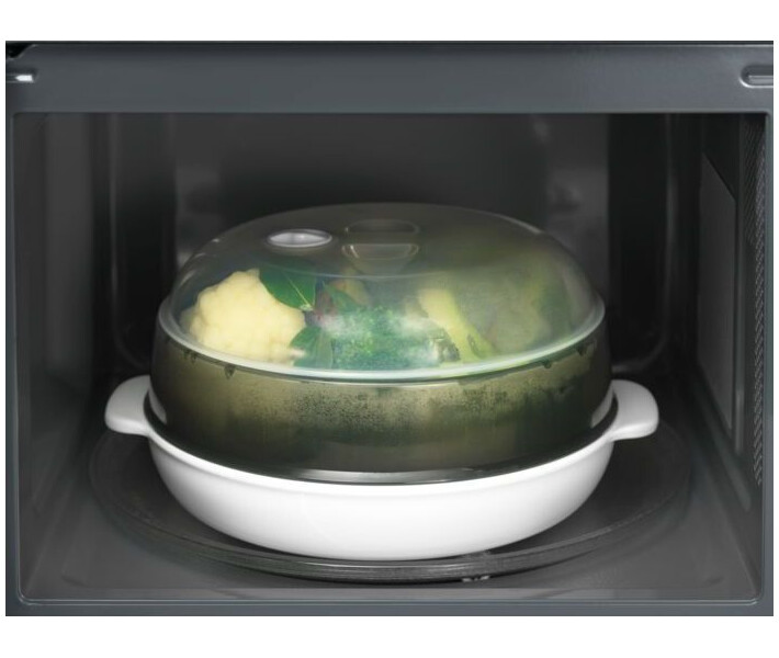 Функція «Гриль» дозволяє досягти чудового смаку та текстури страв, приготовлених на грилі, зі швидкістю та зручністю мікрохвильової печі.