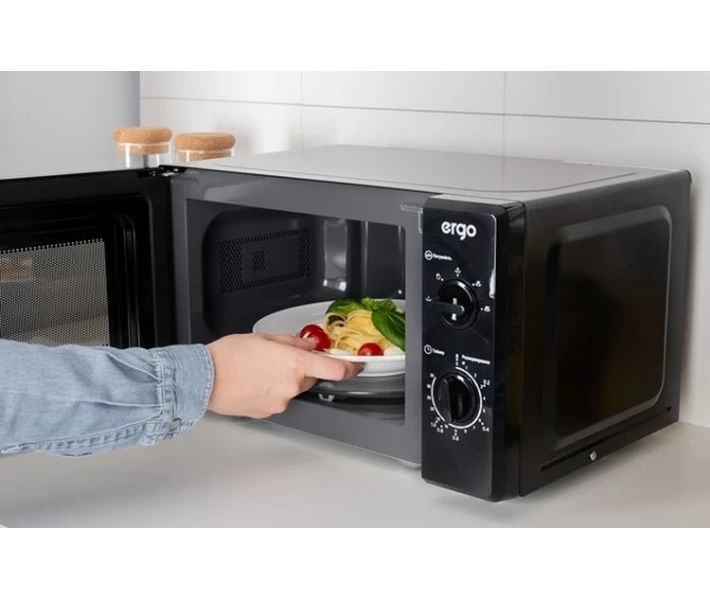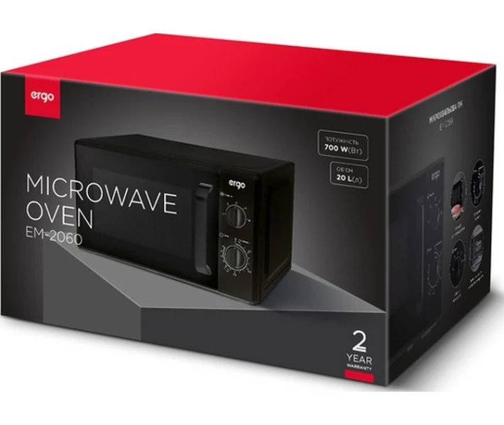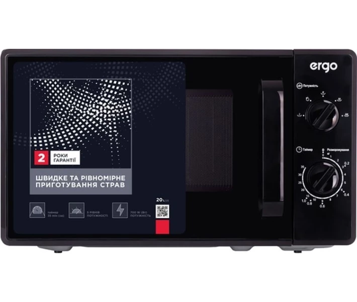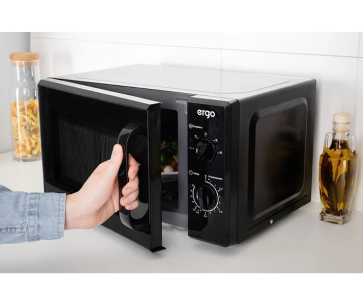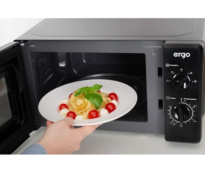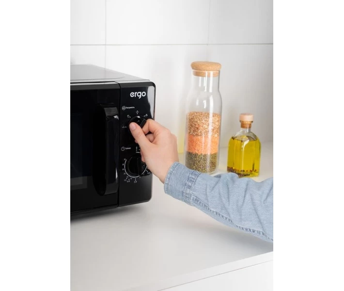 Мікрохвильова піч ERGO EM-2060 – техніка для тих, хто цінує функціональність, стиль і комфорт. Зручне та зрозуміле механічне керування, невеликий дисплей і повноцінний спектр функцій роблять ERGO EM-2060 незамінною помічницею на офісній або домашній кухні, а стильний чорний корпус чудово пасує до будь-якого інтер’єру.