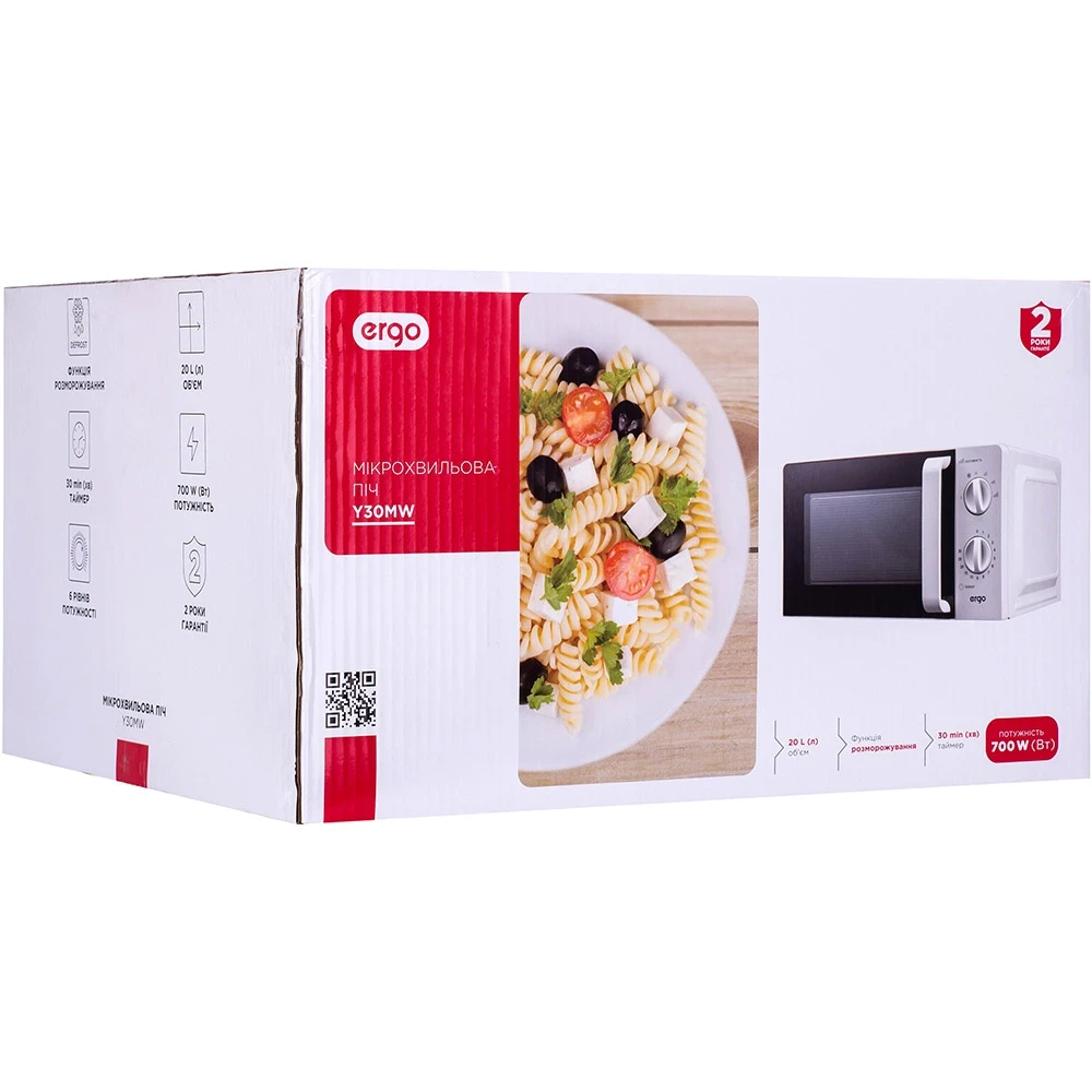 Мікрохвильова піч ERGO Y30MW це елегантне рішення для вашої кухні. Вона прекрасно поєднує в собі стиль і функціональність, забезпечуючи вам швидке та зручне приготування їжі. З її допомогою ви зможете легко приготувати смачні страви для всієї родини або закуски для вечірки. Невеликі розміри і стильний дизайн дозволяють розмістити дану модель практично в будьякій кухні, роблячи її ідеальним доповненням до вашого інтерєру. Нехай ERGO Y30MW стане вашим надійним помічником на кухні та додасть комфорту до вашого повсякденного кулінарного досвіду.