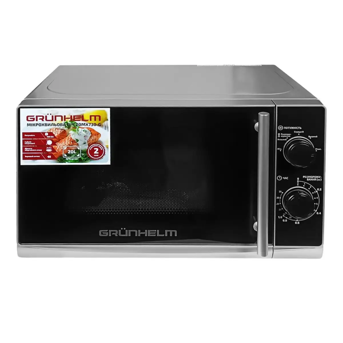 Мікрохвильова піч 20MX730-G виконана в сірому кольорі. Мікрохвильова піч відрізняється високою потужністю в 700 Вт і великий камерою 20 л. Є функції розігріву, розмороження, а також приготування. Для зручного користування передбачений таймер, блокування роботи з відчиненими дверцятами.