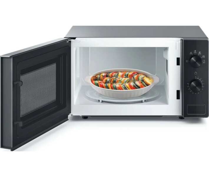 Якість виготовлення на традиційно високому рівні. Тому мікрохвильовка Whirlpool MWP 101 SB вас приємно порадує. При внутрішньому просторі 20 літрів Ви отримуєте типовий поворотний стіл діаметром 245 мм. Зовні рівний однотонний фасад вигідно виділяється на тлі більш традиційних рішень. Оригінально виглядає вставка, стилізована під рукоятку відкривання. Хоча механізм тут кнопковий, виробник використав цей момент для того, щоб зробити зовнішність більш оригінальною. Всередині ви знайдете гладке емальоване покриття, яке дуже легко очищається. Тому підтримувати прилад в чистоті не складе труднощів.