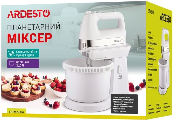 Міксер Ardesto KSTM500W незамінний помічник на кухні для приготування різноманітних страв. Його використання дозволить швидко і легко змішувати інгредієнти для приготування тіста, кремів, соусів та інших страв. Завдяки своїй потужності та ергономічному дизайну міксер забезпечує ефективну роботу та комфорт у використанні. Завдяки компактності, його легко зберігати у кухонному шафі та він не займає багато місця. Користуйтеся міксером Ardesto KSTM500W та насолоджуйтесь простотою та зручністю у приготуванні ваших улюблених страв.