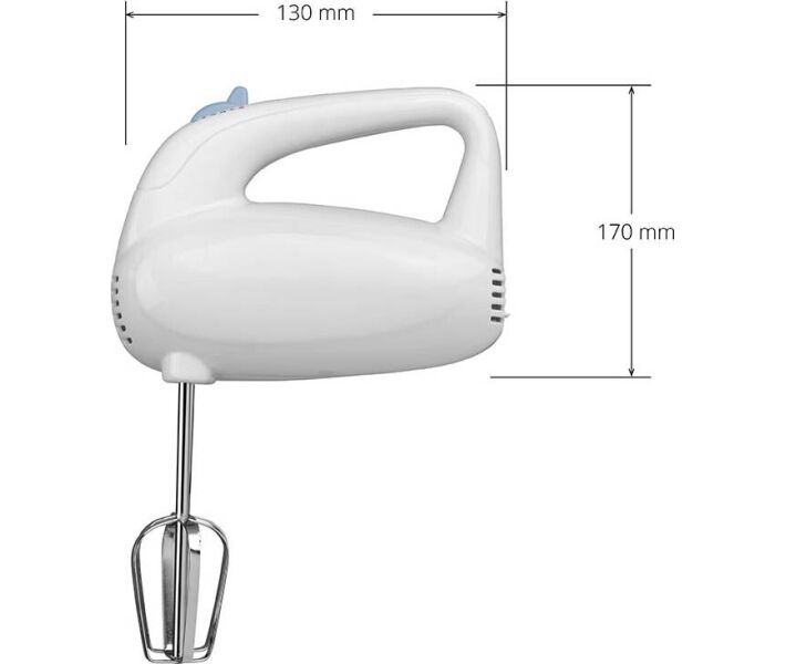 Модель зроблена в традиційному форматі, який передбачає невеликий корпус округлої форми, що приховує під собою двигун і плавно переходить в рогач рукоять. За рахунок вдалої развесовки ви не упустите міксер під час виконання всіляких операцій ним.