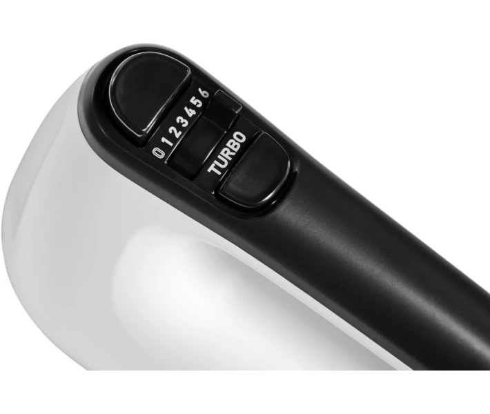Оснащений шістьма швидкісними режимами роботи, цей міксер дозволяє змішувати продукти різної щільності з максимальною ефективністю. Завдяки механічному типу управління, він легко піддається регулюванню, а матеріал корпусу із пластику забезпечує легкість та зручність у користуванні.