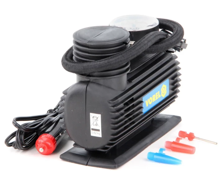 Мінікомпресор автомобільний VOREL 12В незамінний помічник на дорозі. Він забезпечить швидке і зручне накачування шин у випадку проколу чи недостатнього тиску. Портативний розмір дозволяє легко зберігати його в багажнику автомобіля без зайняття багато місця. Потужність і ефективність даного пристрою дозволить вам легко виконувати самостійну перевірку й накачування шин без необхідності звертатися до автосервісу. При виникненні проблем з тиском у шинах у критичний момент, ви зможете оперативно і без зайвих витрат часу вирішити проблему завдяки цьому надійному компресору.