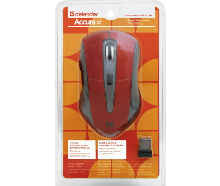 Збільшений радіус дії бездротового зв'язку забезпечує більшу свободу дій. Купити мишку комп'ютерну Defender Accura MM-965 Wireless Red (52966) ви можете, оформивши замовлення у нас на сайті, а також зателефонувавши на номер нашої гарячої лінії.