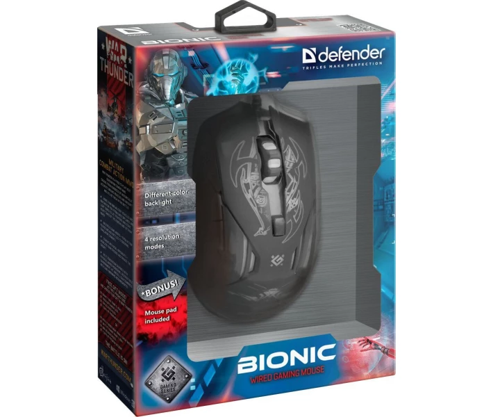 2 програмовані кнопки під великим пальцем дозволяють налаштувати миша під потреби гравця. Текстурна поверхню верхньої кнопки знижує ризик «сліпого» натискання. Купити мишки Defender Bionic GM-250L + Black (52250) Ви можете, оформивши замовлення у нас на сайті, а також за телефоном гарячої лінії.
