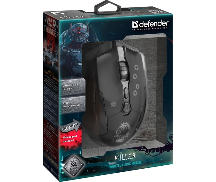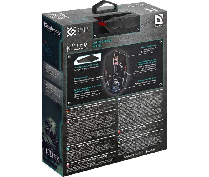 Кнопка перемикання dpi дозволяє вибрати швидкість переміщення курсору (800/1800/2400/3200 dpi). Обраний рівень швидкості курсора відображається різною інтенсивністю підсвічування колеса прокрутки. Купити мишку комп'ютерну Defender Killer GM-170L + килимок Black (52170) ви можете, оформивши замовлення у нас на сайті, а також за телефоном гарячої лінії.