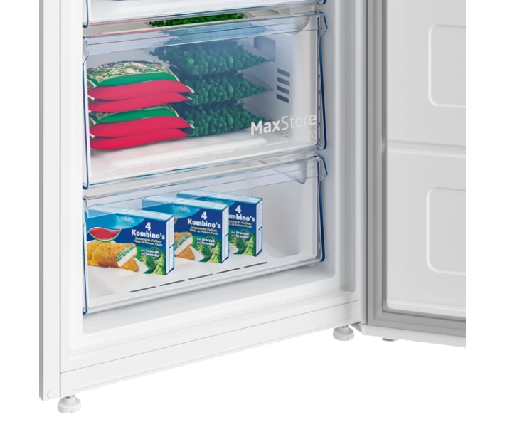 З Beko B1RFNE273W ваші запаси завжди під надійним захистом. Вражаючий корисний об'єм – 220 літрів, а загальний – 271 літр дозволяє зберігати максимально різноманітні продукти. Висота 151.5 см, ширина 59.7 см та глибина 70.9 см допоможуть ідеально інтегрувати пристрій у будь-яку кухню або комору, а клас енергоспоживання A+ стане приємною економією для вашого бюджету. Охолодження відбувається за інноваційною системою No Frost: інею та льоду на стінках ви більше не побачите, а кліматичний клас SN-T гарантує роботу від +10 до +43°C. П'ять міцних прозорих ящиків забезпечують комфортне розміщення всього необхідного, а білий корпус додає свіжості до інтер'єру. Механічне керування Beko B1RFNE273W завжди просто та інтуїтивно, тому контролювати температуру можна легко та швидко. Морозильна камера здатна заморозити до 16 кг продуктів за добу, а при вимкненні світла їжа буде захищена до 13 годин. Безпечний та екологічний холодоагент R600a, традиційний компресор, продуманий комплект з кабелем живлення, інструкцією та гарантійним талоном забезпечують повну готовність до використання практично у будь-який момент.