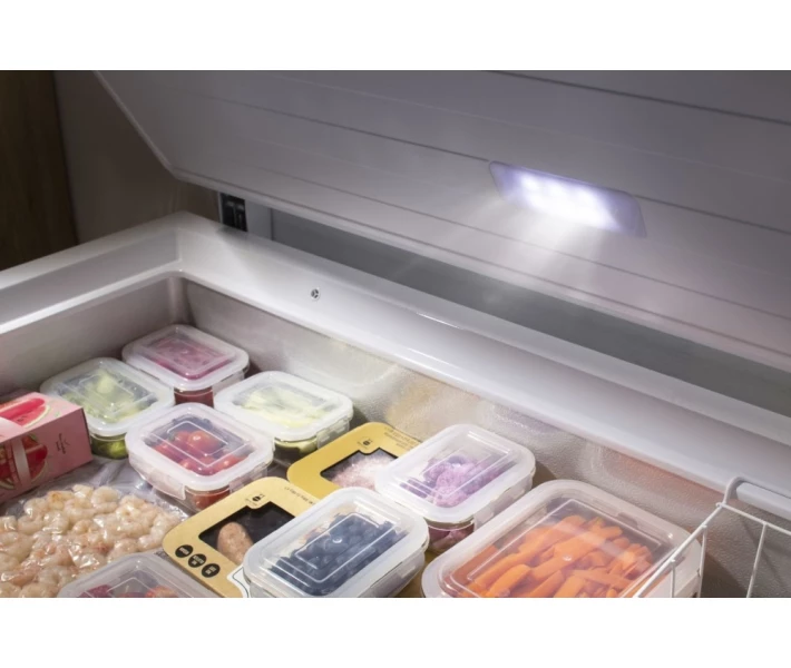 Оптимальна ефективність за низьких температур. Сильний холод не завадить при використанні цієї морозильної шафи, оскільки вона добре працює, навіть якщо температура зовні опускається до -15 °C. Тому вона ідеально підходить для встановлення в гаражі чи льоху.