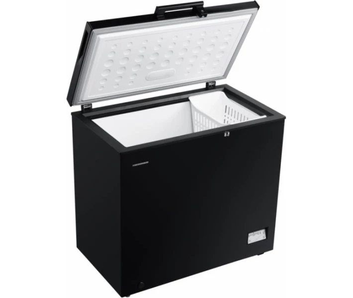 Морозильна скриня з ручним розморожуванням, корисний об'єм 198 л, потужність заморожування 10 кг/добу, електронне управління, клас енергоспоживання F (новий стандарт), режим суперзаморожування, світлодіодне освітлення, колір чорний.