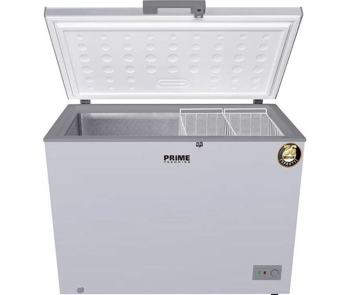 Морозильна камера Prime Technics CS 30144 гранично проста. Використовується традиційний поршневий компресор, який має хороший ККД. Механічна система регулювання продуктивності винесена на лицьову панель. Для налаштування вам не потрібно відкривати камеру. Крім того, передбачена індикація режиму роботи, яка просигналізує про проблеми в системі. Морозильна камера відмінно тримає холод, адже в корпусі використовуються хороші ізоляційні матеріали. І навіть при відкритій кришці холодне повітря не поспішає залишати простір камери. Такі закони фізики, які в даному випадку використані по максимуму на користь покупця.