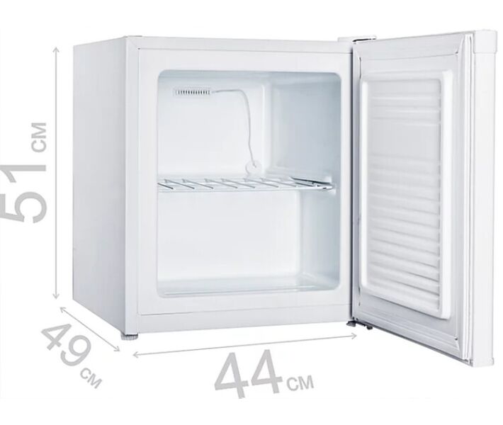 Морозильна камера Prime Technics FS 504 M відноситься до класу маленьких пристроїв - його корисний об'єм всього 35 л. При цьому місця даний пристрій вимагає мінімум, тому що габарити даної техніки по ширині не перевищують 46 см. Такий куб можна встановити окремо від холодильника для забезпечення низькотемпературного середовища зберігання для окремих продуктів. Усередині є полка, завдяки якій камера розділяється на 2 відсіки.