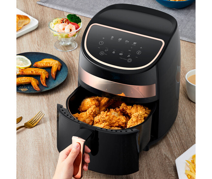 Тип: мультипіч (аерофритюрниця); Сенсорний екран; Світловий індикатор нагрівання/роботи; Купольна нагрівальна трубка; Функції приготування: Випічка, Гриль на решітці, Смаження у фритюрі, Сушка; Знімна кришка; Безолійне смаження