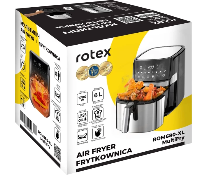 Rotex — український бренд із міжнародними стандартами якості, місія якого: робити доступною сучасну, надійну та функціональну побутову техніку. Гарантія якості та надійності, сервісне обслуговування європейського рівня – важливі складові роботи компанії. Мультипіч від Rotex ROM680-XL MultiFry надасть вам можливість насолоджуватися запеченим м'ясом та овочами, займатися випічкою, готувати у фритюрі та навіть на грилі. Головною відмінністю пристрою є його інтуїтивно зрозуміле управління сенсорного типу. А з визначенням обраного режиму роботи допоможе світлодіодна індикація. Тепер приготувати картопля фрі з мінімальним вмістом олії, а також інші страви не складе жодних труднощів навіть для недосвідченого користувача. При всій своїй функціональності мультипіч досить компактна і не створюватиме жодних незручностей при зберіганні навіть в умовах обмеженого простору. Купити Rotex ROM680-XL MultiFry Ви можете, оформивши замовлення у нас на сайті, а також по телефону гарячої лінії.