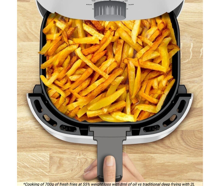 Корисна для здоров'я мультипіч, що забезпечує хрумку золотисту скоринку з мінімальною кількістю олії або без неї — на 99% менше доданого жиру* (*для 600 г картоплі фрі, приготовленої з 7 мл олії, порівняно з традиційною обсмажуванням у фритюрі з 2 л)