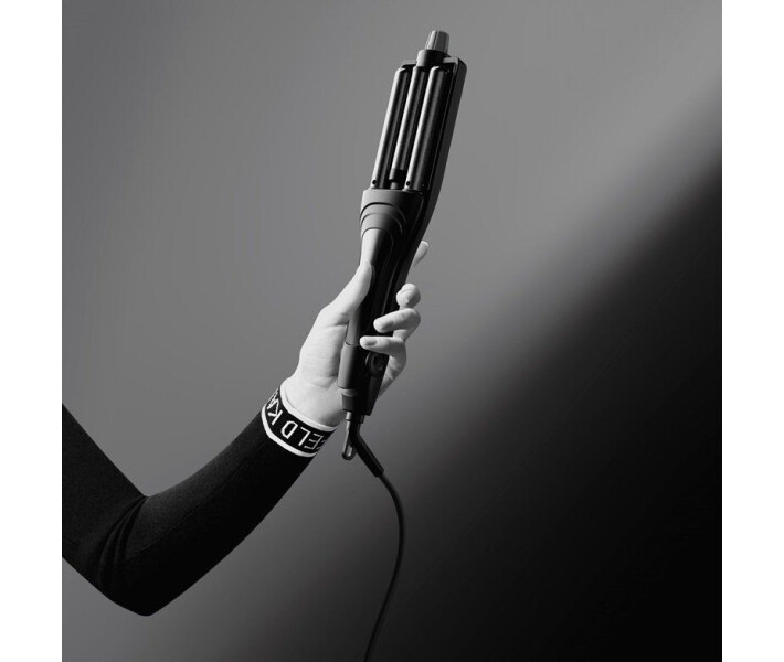 За допомогою щипців для завивки волосся Rowenta x KARL LAGERFELD Waves Addict ви зможете зробити чотири красиві зачіски, які справлять враження. Відкрийте для себе ідеальний хвилястий стиль з чотирма простими у використанні налаштуваннями положення для природних хвиль, пляжних хвиль, м'яких елегантних хвиль або сміливих і сліпучих хвиль. Шість цифрових температур (до 210 ° C), регульованих залежно від типу волосся, а також розширені функції для легкого укладання щодня – і все це в ергономічному та сучасному дизайні.
