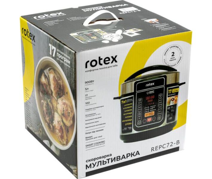 Мультиварка Rotex REPC72-B стане справжнім порятунком для тих, хто цінує переваги техніки, що поєднує в собі кілька видів приладів. Вона дуже функціональна, має класичний дизайн. По суті, даний пристрій - це скороварка, пароварка, сковорода, каструля, духовка, фритюрниця і йогуртниця в одному корпусі.