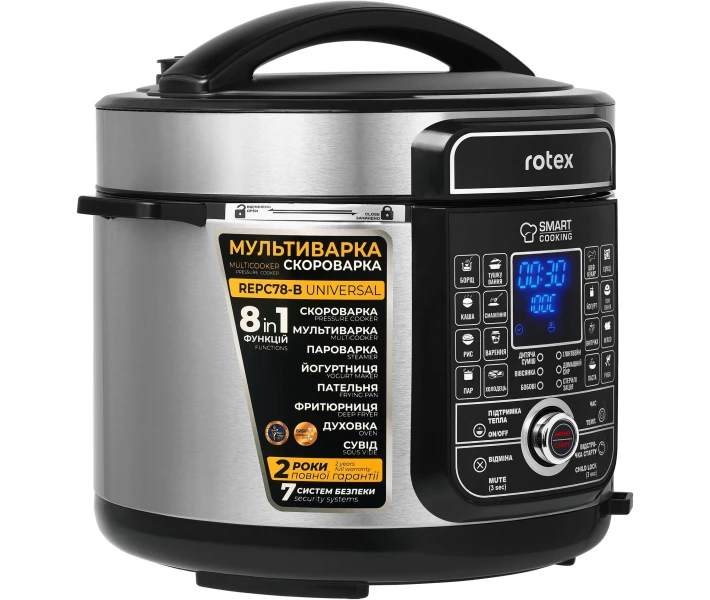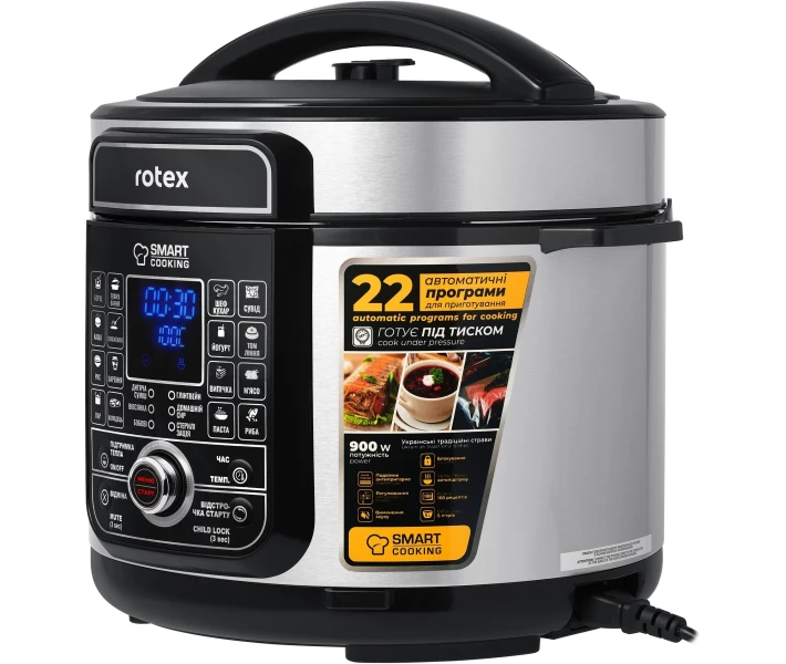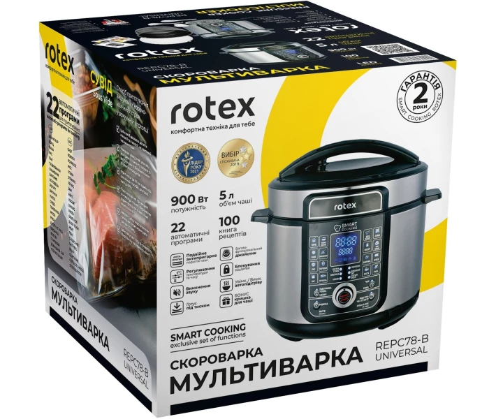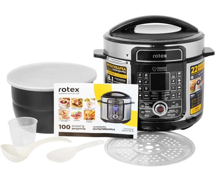 Мультиварка Rotex REPC75-B має можливість приготування під тиском, що дозволить приготувати страви швидше. В арсеналі мультиварки є 16 автоматичних програм, функція відстрочки старту, таймер, а також функція збереження страви гарячою. Чаша мультиварки об'ємом 5 лл має антипригарне покриття, яке перешкоджає пригорання страв. За допомогою Rotex REPC75-B Ви зможете готувати власні страви за допомогою програми "свій рецепт". У комплекті мультиварки є мірний стаканчик, стаканчики для йогурту і ложка. А книга рецептів дозволить урізноманітнити Ваше меню.