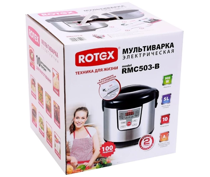 Мультиварка Rotex RMC503B – це зручний і багатофункціональний прилад для приготування різних страв. Завдяки своїй компактності, вона займе мінімум місця на кухні, а безліч режимів приготування дозволять вам готувати різноманітні страви, зберігаючи всі корисні вітаміни й мінерали. Перевага цієї мультиварки – можливість зекономити час на приготуванні їжі, оскільки вона дозволяє готувати одночасно кілька страв. Різноманітні функції, такі як пароварка, запікання, тушення тощо, роблять цю мультиварку чудовим помічником на кухні. Крім усього іншого, стильний дизайн мультиварки Rotex RMC503B стане гідним прикрасою будьякої кухні.