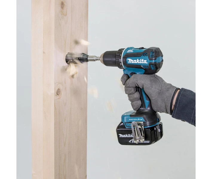 Інструмент оснащений безщітковим двигуном, який не потребує частого ТО. Завдяки відсутності додаткових щіток, що труться, знижується рівень нагріву корпусу, шум під час використання пристрою та зменшується ризик іскроутворення. Завдяки пило- та вологозахищеному корпусу акумуляторний ударний дриль-шурупокрут Makita DHP485RFJ використовується в складних умовах ремонту та монтажу. Автономний інструмент захищений системою, яка запобігає пошкодженню АКБ внаслідок впливу високої температури або повного розряду.