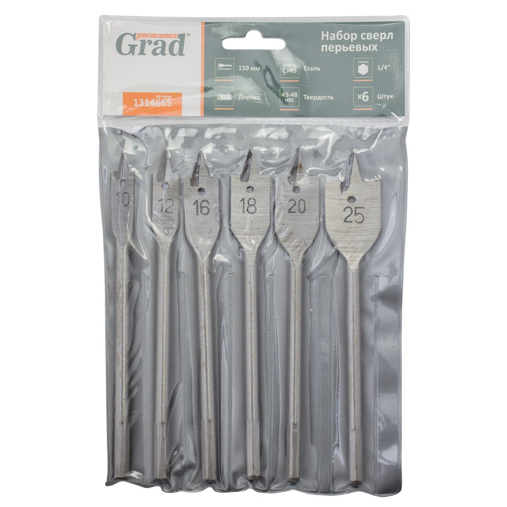Інформація Набір свердл перових GRAD 6шт Ø10, 12, 16, 18, 20, 25мм