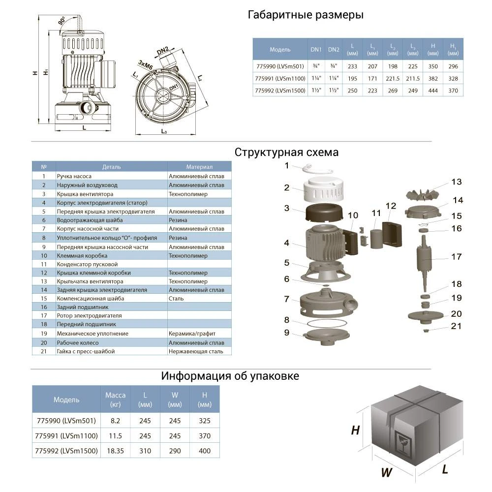 Характеристики Насос вертикальний 0.75кВт Hmax 21.5м Qmax 190л/хв (БЦПН) LEO (775991)