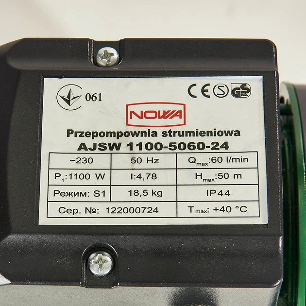 Насосна станція струменева NOWA AJSW 1100-5060-24 призначена для забезпечення в автоматичному режимі стабільного безперебійного постачання чистою холодною водою житлових, побутових і господарських об'єктів, а також інших споживачів. Водозабір може здійснюватися як із напірних локальних або магістральних водопроводів для підвищення тиску води в системі споживача, так і з відкритих водних джерел — свердловин, колодязів, басейнів, водосховищ тощо.