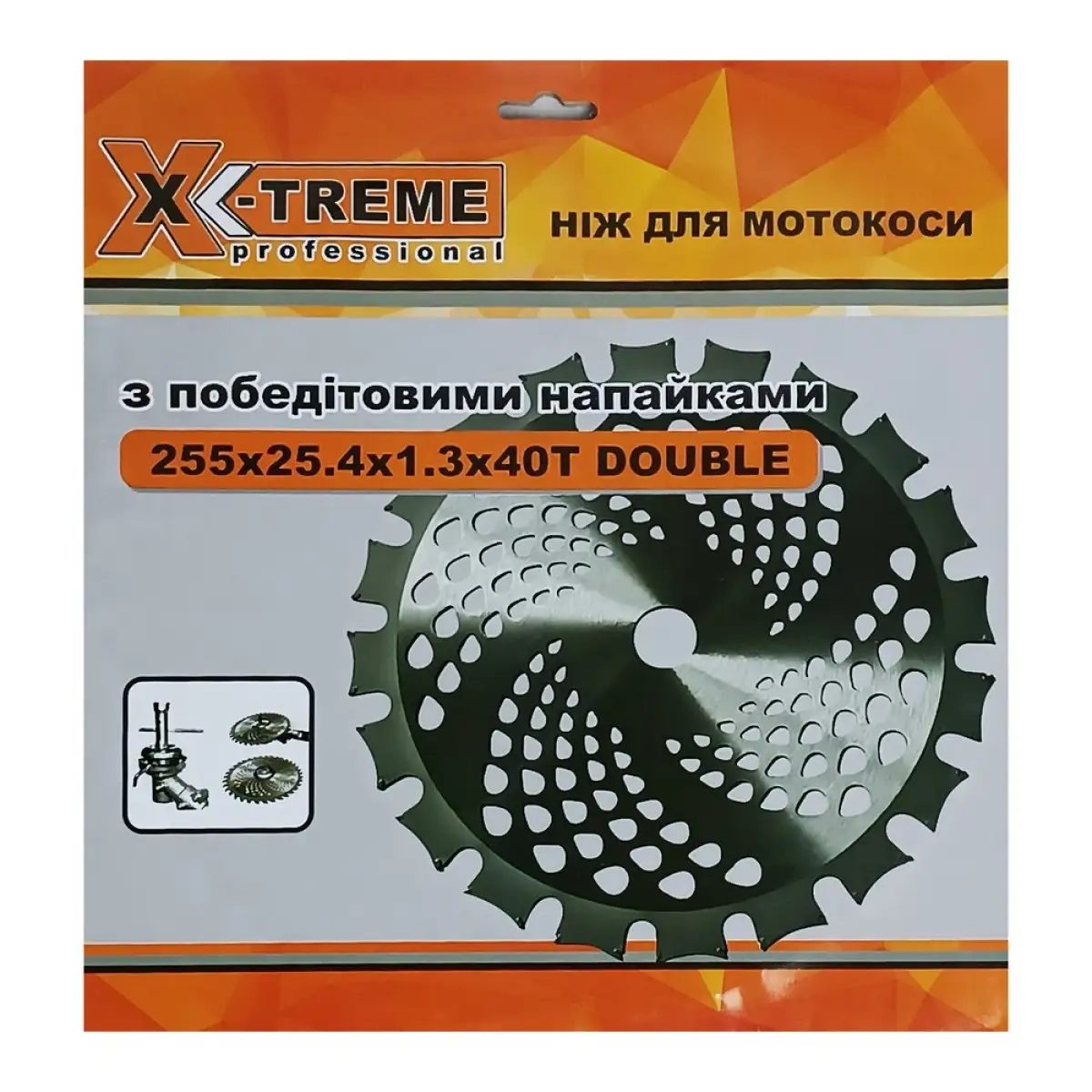 Характеристики Ніж для мотокоса DOUBLE X-Treme 255x25.4x1.3мм x 40Т з переможними напайками Виробник X-Treme Країна походження Китай Гарантія Повернення/обмін 14 днів Діаметр 255 мм Внутрішній діаметр диска 25,4 мм Товщина диска 1.3 мм Матеріал Сталь Призначення Для косіння густої трави та бур яну Особливості Загартована сталь Правильна геометрія ножа Переможні напайки Перехідник на 20 мм Штрих код:2000963162706