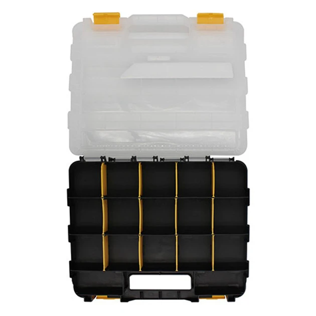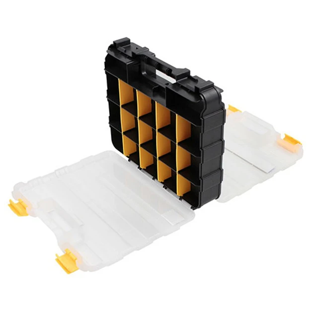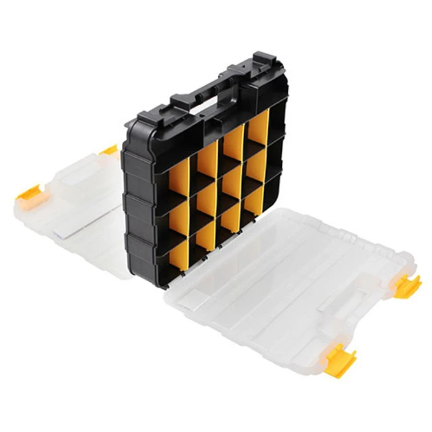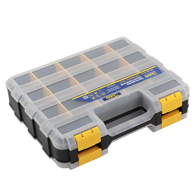 Двосторонній органайзер Kubis 09-00-0232 зручний для використання за рахунок великої кількості відділень. Використовується для зберігання і транспортування різного кріплення, шайб, прокладок, фурнітури, рибальських снастей і іншого приладдя. Для практичності кришка виконана з напівпрозорого пластика.