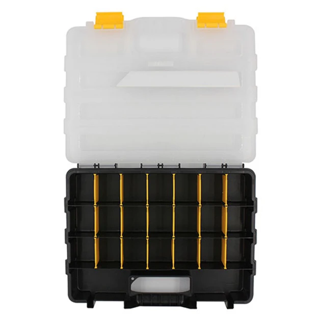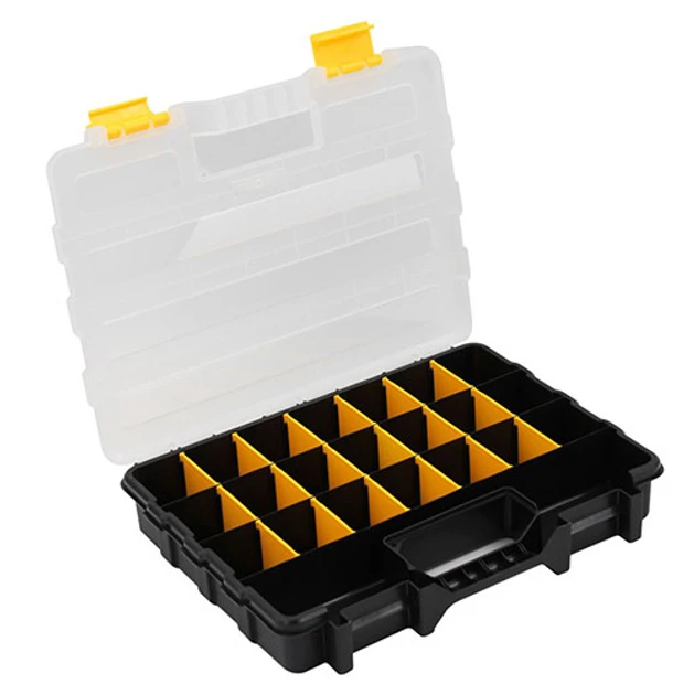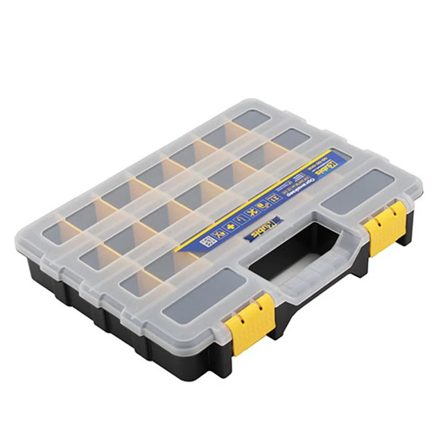 Двосторонній органайзер Kubis 09-00-0131 зручний для використання за рахунок великої кількості відділень. Використовується для зберігання і транспортування різного кріплення, шайб, прокладок, фурнітури, рибальських снастей і іншого приладдя. Для практичності кришка виконана з напівпрозорого пластика.