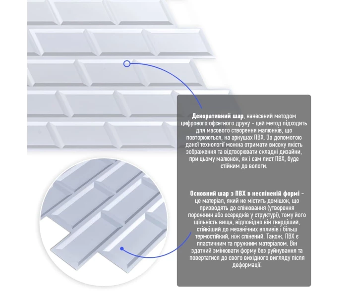Панелі дуже прості у монтажі, практичні у використанні та довговічні. Для монтажу панелей Вам потрібен буде: клей для ПВХ, ножиці або монтажний ніж, рівень чи лінійка, скотч (для фіксації свіжих панелей).