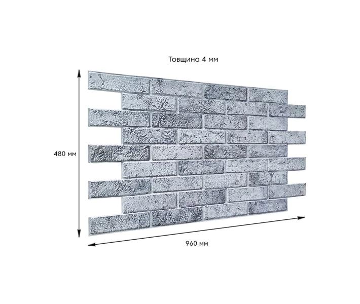 - Після підсихання клею продовжити монтаж наступного ряду. Розмір ПВХ панелі – 960ммх480мм. Товщина – 4 мм.