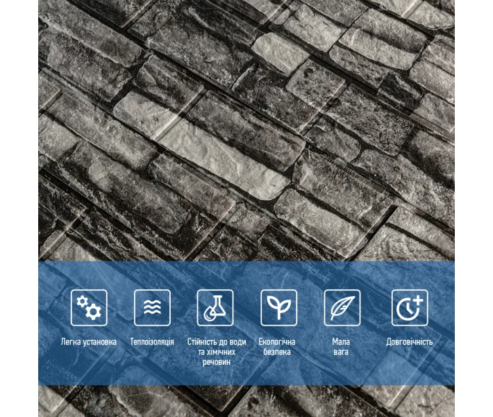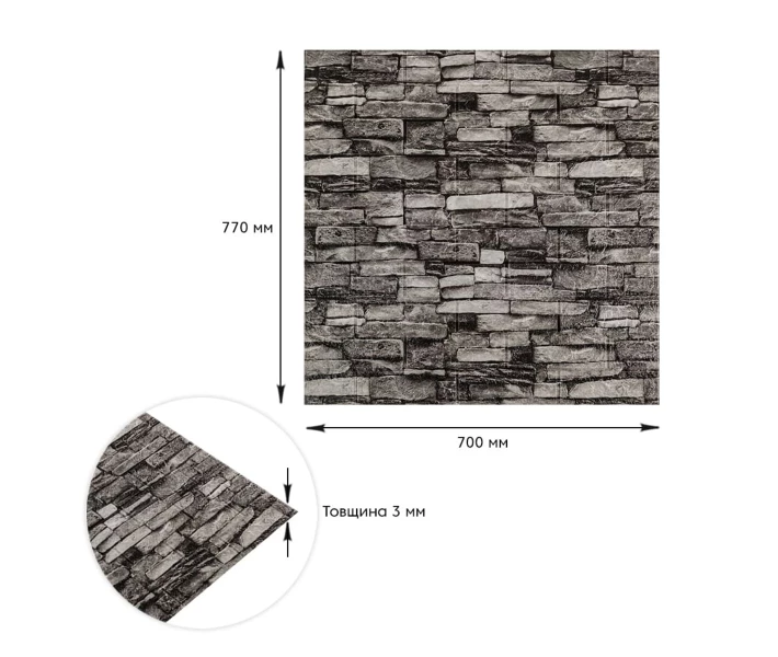 Самоклеюча 3D панель під камінь сірий піщаник 700x770x3мм (59-3) SW-00001481