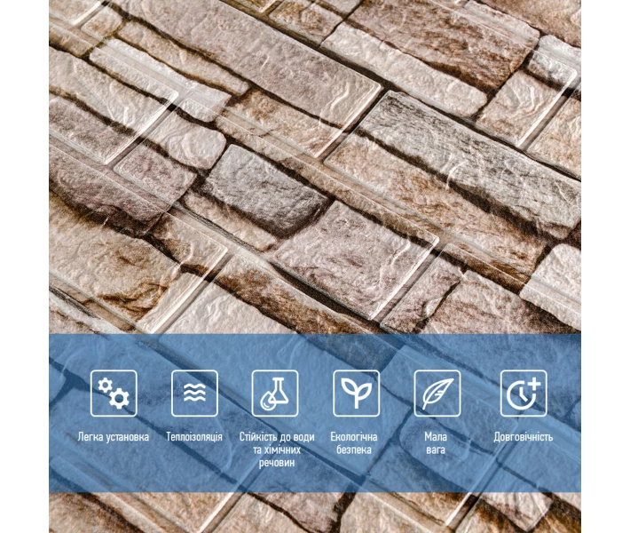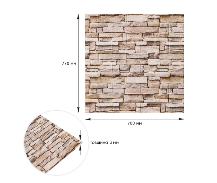 Самоклеюча 3D панель під бежеву цеглу катеринослав 700х770х3мм (344-3) SW-00001383