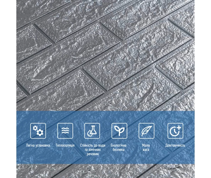 3D панелі самоклеючі – декоративне покриття для стін, виконане з легкого та міцного матеріалу – пористого поліпропілену (ППП). Основна особливість – рельєфний малюнок у вигляді цегли у широкому різноманітті кольорів та наявність клейового шару, що дозволяє встановити панелі без необхідності застосування додаткових матеріалів.