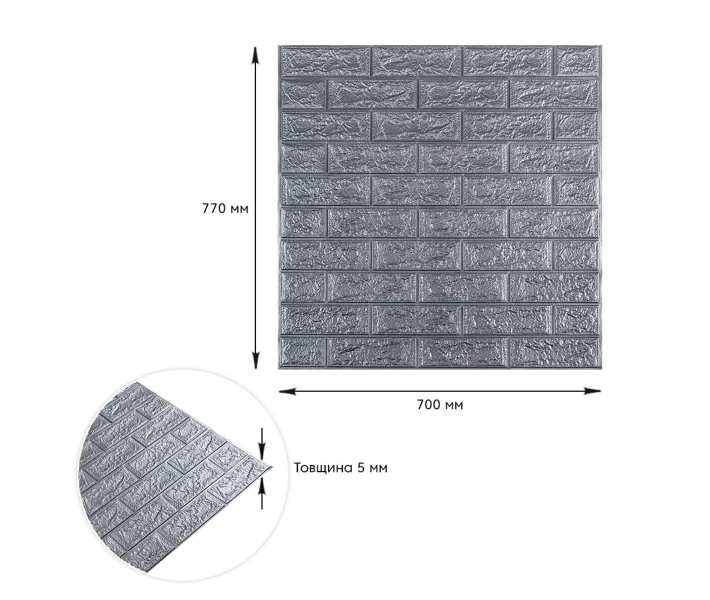 Купити 3D панель самоклеюча цегла Срібло 700х770х5мм (017-5) SW-00000038 ви можете, оформивши замовлення у нас на сайті, а також за телефоном гарячої лінії.