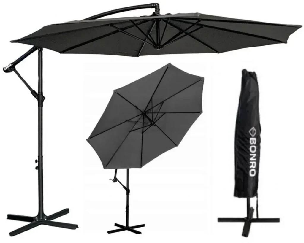 Замовити парасоль садову Bonro раціонально з точки зору практичності. Конструкція наділена механізмом зміни нахилу верхівки. Це дозволить не перейматися через рух сонця протягом доби чи при раптовій зміні напрямку вітру. В подібних ситуаціях слід легким рухом лише змінити положення верхівки на інший кут. Додаткову позитивну рису механізм нахилу відіграє в питанні рівноваги. Нахил змінює лише верхівка, тому центральна труба завжди залишається в чітко вертикальній позиції, що мінімізує ймовірність раптового перекидання парасолі.