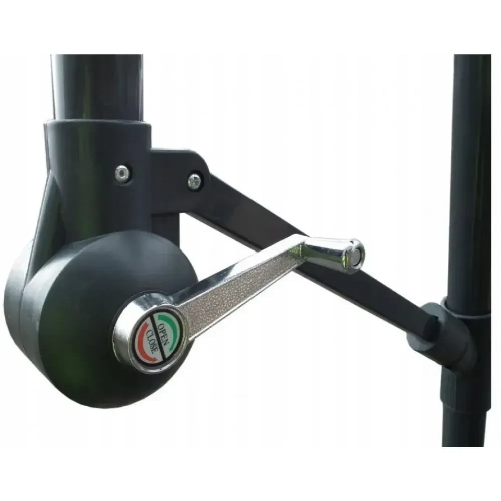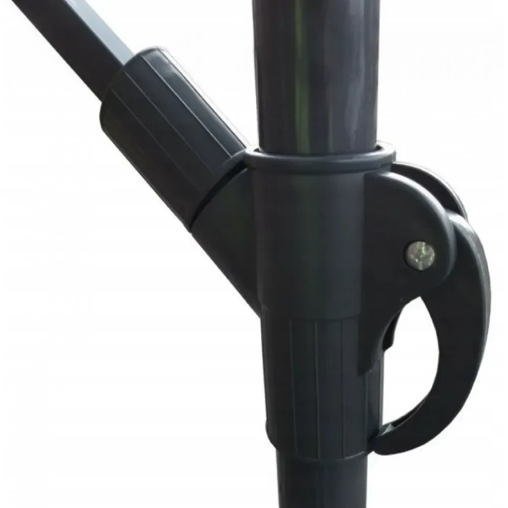 Завдяки стійці діаметром 38 мм парасольку можна прикріпити до підставки або столу з пристосованим отвором. Використання механізму з ручкою дозволяє легко і швидко розбирати конструкцію. Крім того, у верхній частині є вентиляційний отвір, який запобігає напруженням, спричиненим поривами вітру.