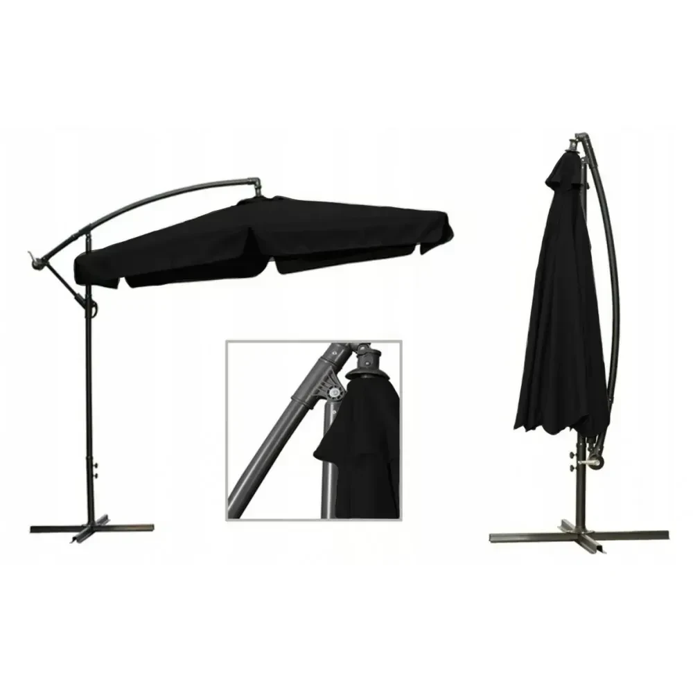 Парасолька виготовлена з міцного поліестеру 180 г /м. кв., що захищає від дощу та сонця, з чорним кольором, який адаптується до будь-якого простору та забезпечить великий приємний відтінок.
