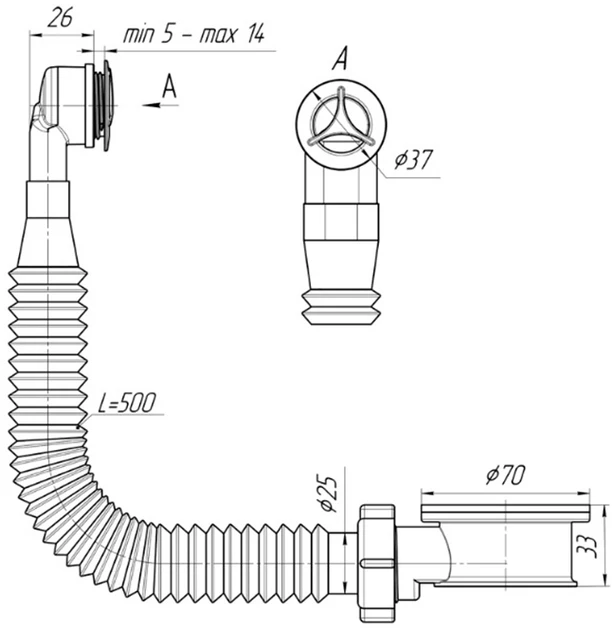 Представлена тут модель гофрованого переливу N420SR1 від ANI Plast призначена для встановлення на раковини та умивальники, які не мають свого вбудованого переливу.