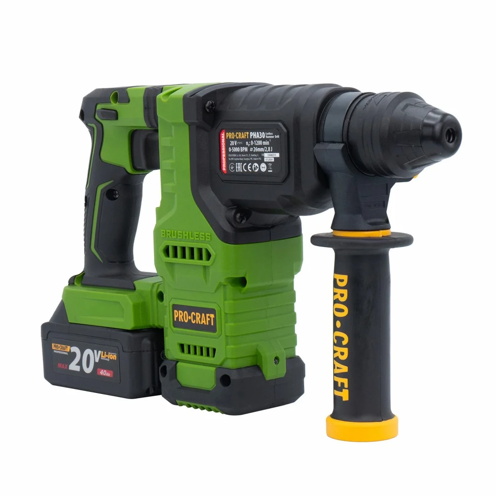 Перфоратор акумуляторний ProCraft PHA-30 - це потужний і надійний інструмент, створений для виконання найскладніших будівельних завдань. Завдяки безщітковому двигуну, він забезпечує високу ефективність, довговічність і стабільну роботу. Працює від акумуляторів з напругою 20В (не входять до комплекту), що надає користувачеві повну свободу дій.