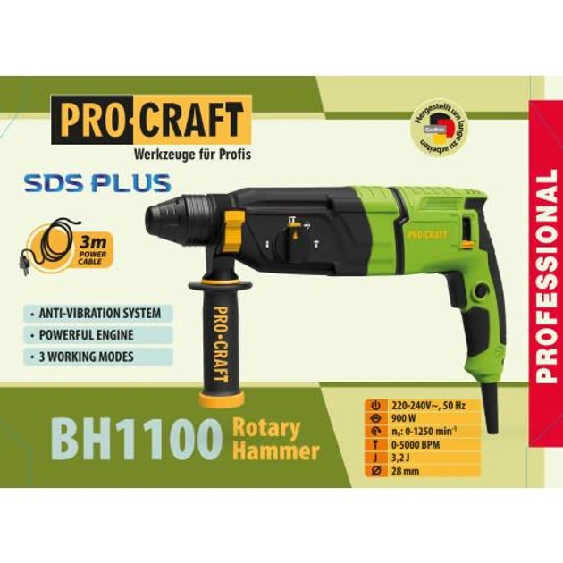 Інформація Перфоратор Procraft BH-1100 електричний, SDS PLUS прямий