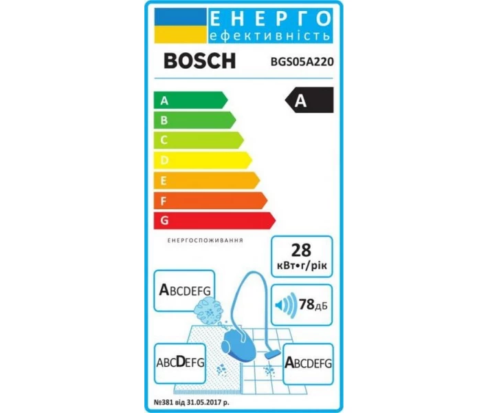 Інформація Пилосос Bosch BGS05A220