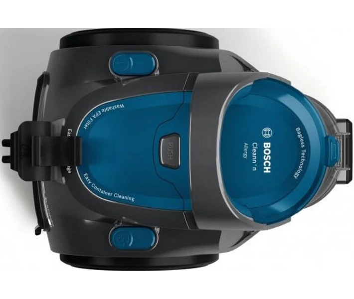 Пластиковий контейнер, ємністю 1.5 л, знімається одним натисканням на кнопку і не має гострих кутів, де затримувалася б бруд. Система Easy Clean полегшує чистку пилососа. Фільтри НEPA H10, НEPA H13 легко миються і запросто затримують мікроскопічні частинки пилу, роблячи повітря чистіше. Безмішкові пилосос Bosch BGC05AAA1 має три насадки: підлога / килим, щілинна та для м'яких меблів. А шнур, радіусом дії 9 м, дозволить дістатися до всіх куточків.