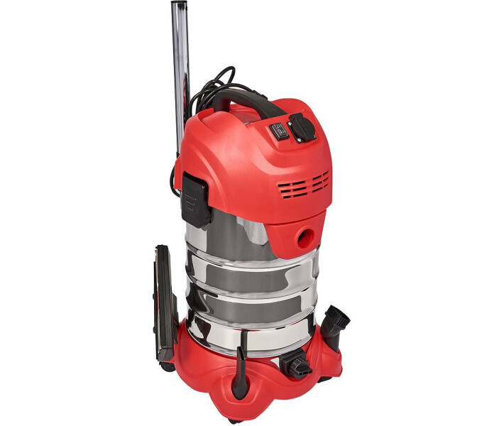 Пилосос будівельний VITALS Master PS 3012sw — універсальний інструмент для прибирання будівельного сміття, пилу та рідин. Оснащений двигуном потужністю 1200 Вт, що забезпечує високу ефективність роботи. Має місткий контейнер об'ємом 30 літрів із нержавіючої сталі, що гарантує довговічність. Функція видування дозволяє використовувати пристрій для очищення важкодоступних місць. Зручний у використанні завдяки ергономічній конструкції та мобільності.