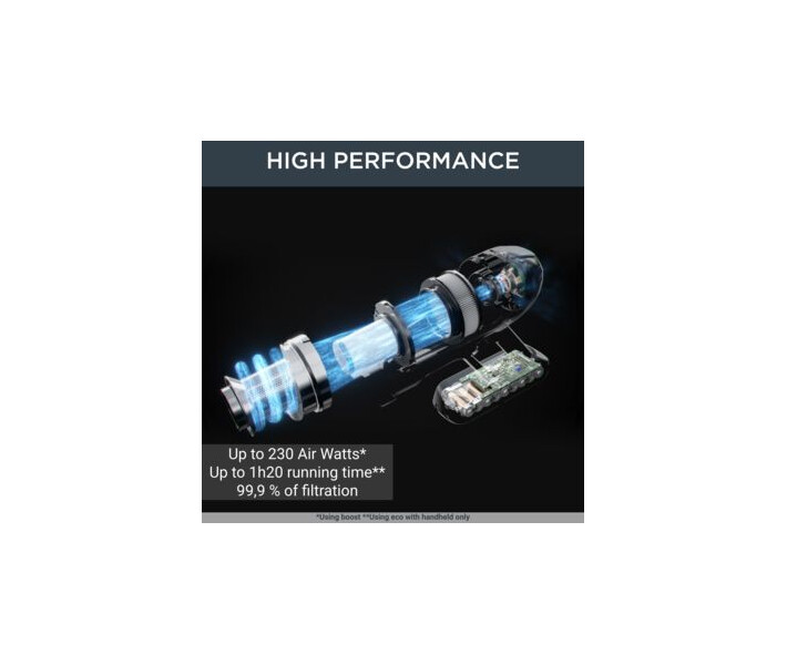 9-елементна батарея/32,4 В забезпечує безперебійне всмоктування до 1 години 20 хвилин, щоб очистити весь ваш дім від одного заряду за допомогою швидкого 3-годинного циклу заряджання. при використанні КПК у потужному положенні Eco.