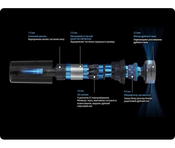 - Мінімізує тертя, максимізує потужність всмоктування, видаляє дрібний побутовий пил