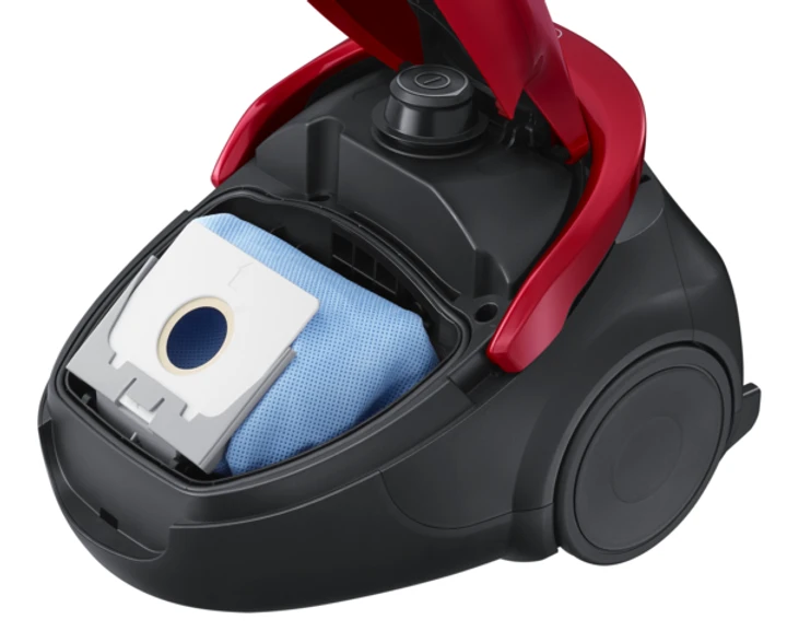 Щоб не починати прибирання, коли не встановлено мішок для пилу, в пилососі передбачено захисний люк. Суть механізму в тому, що пилосос не можна закрити, поки не буде встановлено аксесуар для сміття.